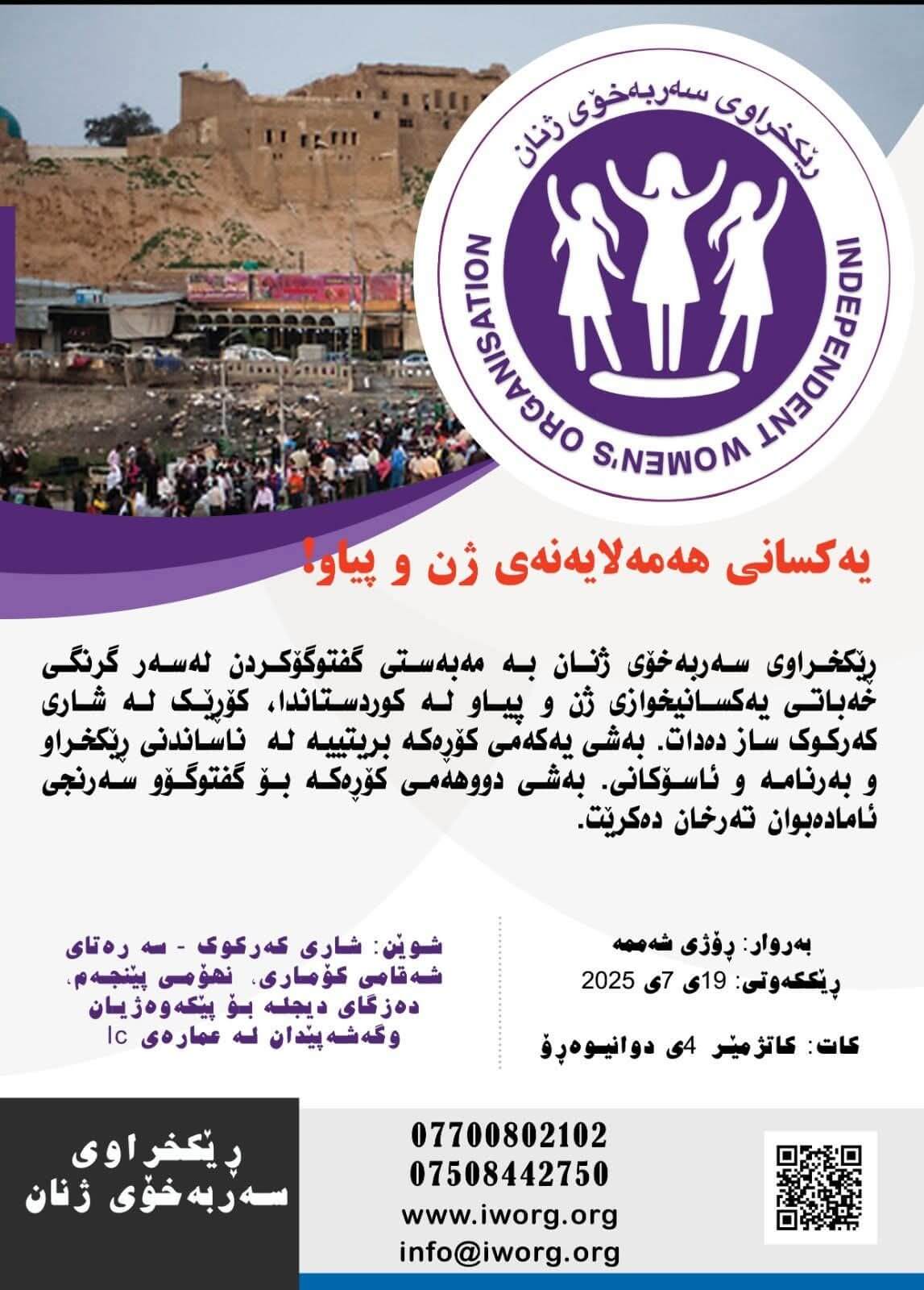 کۆڕی ناساندنی ڕێکخراوی سەربەخۆی ژنان لە شاری کەرکوک لە 19ی 7 ی 2025 بەڕێوە دەچێت.