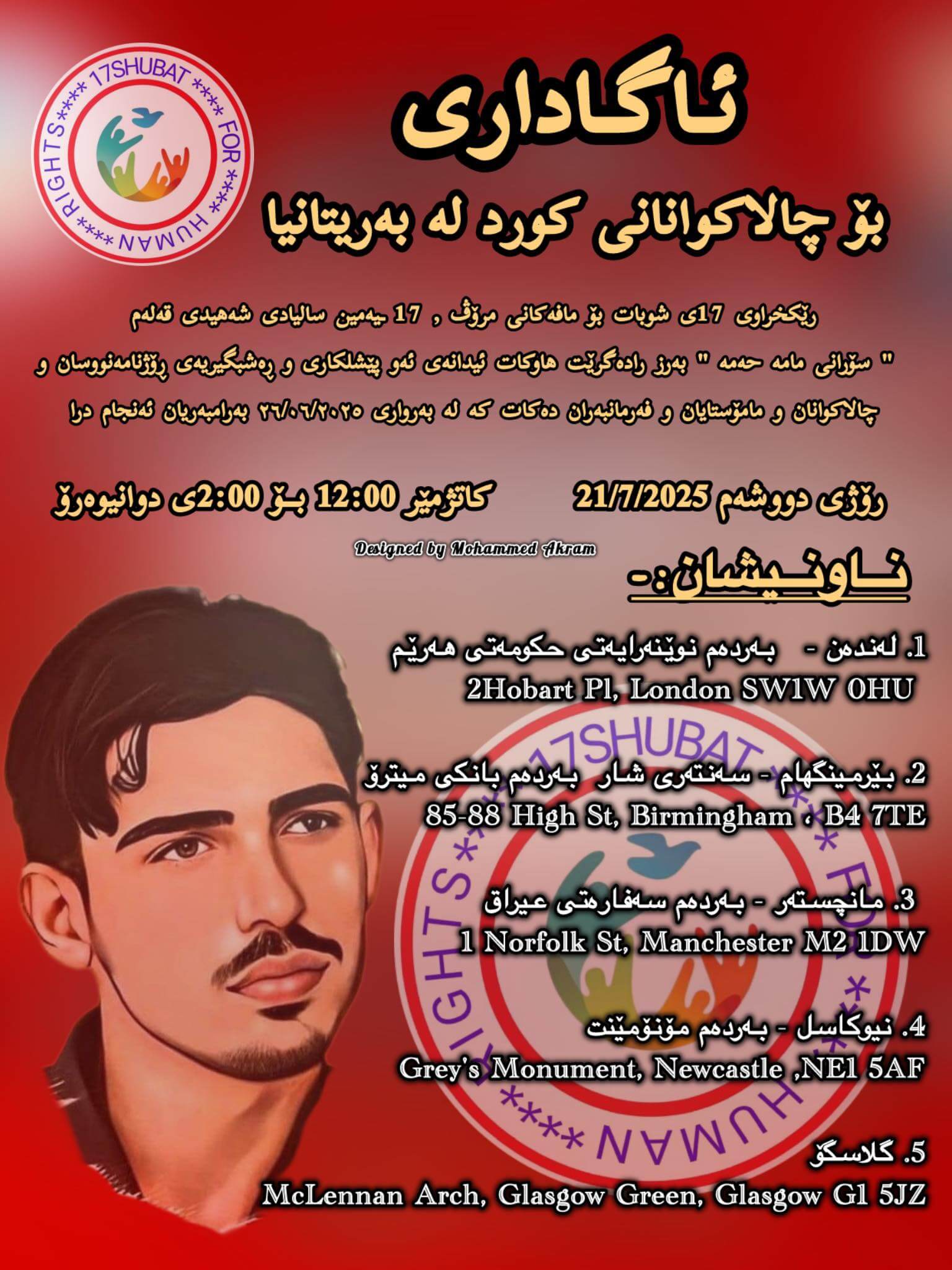 رێکخراوی 17ی شوبات بۆ مافەکانی مرۆڤ 17ـیەمین سالیادی شەهیدی قەلەم ” سۆرانی مامە حەمە ”